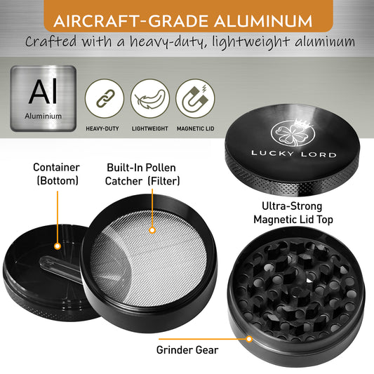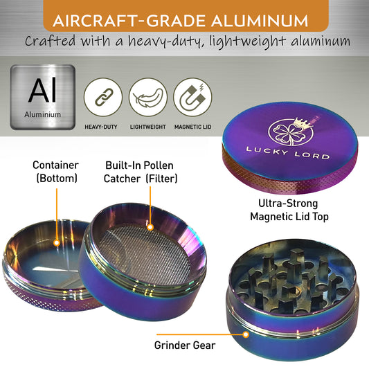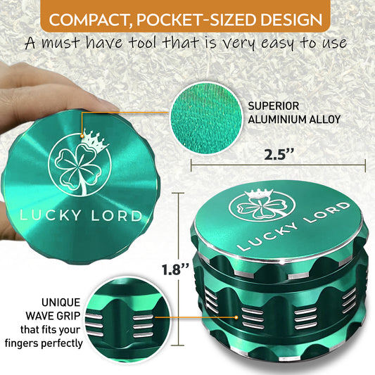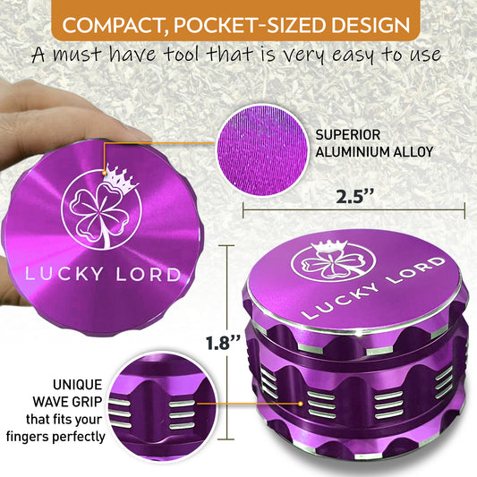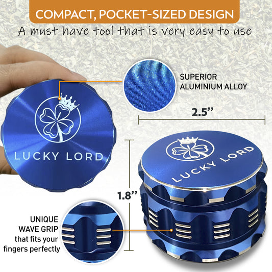Lucky Lord Spice Herb Tobacco Grinder 2.5 Inch 4 Piece Crusher Aluminum Grinder