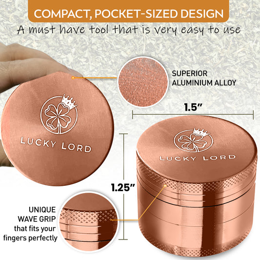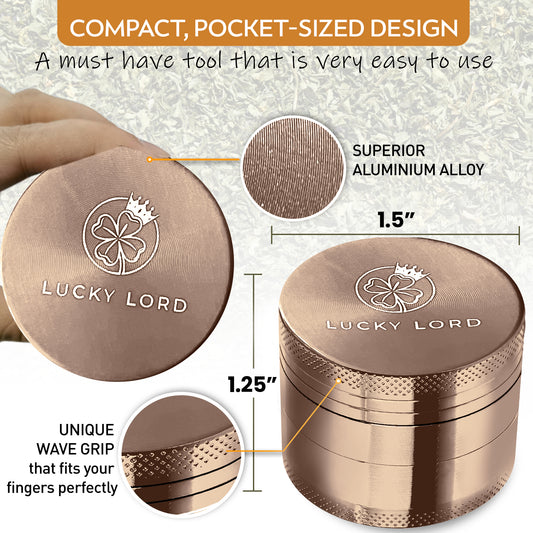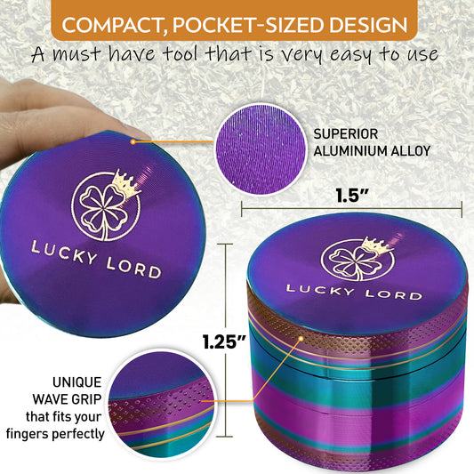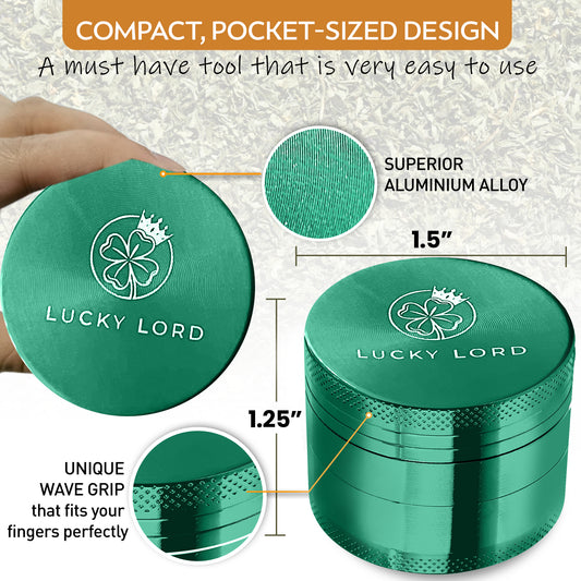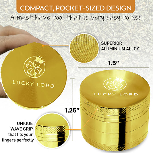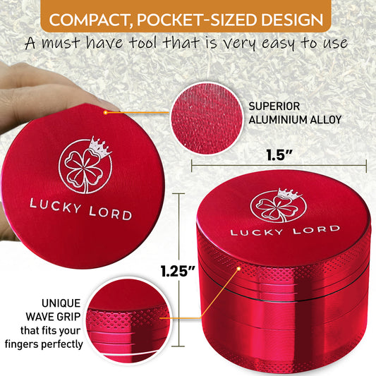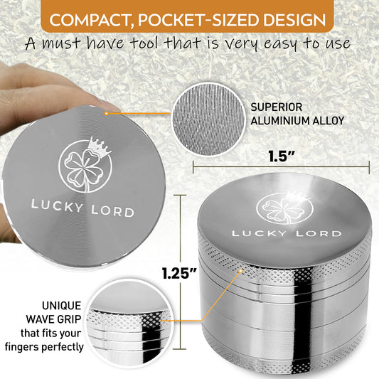 Lucky Lord Spice Herb Tobacco Grinder 1.5 Inch 4 Piece Crusher Aluminum Grinder